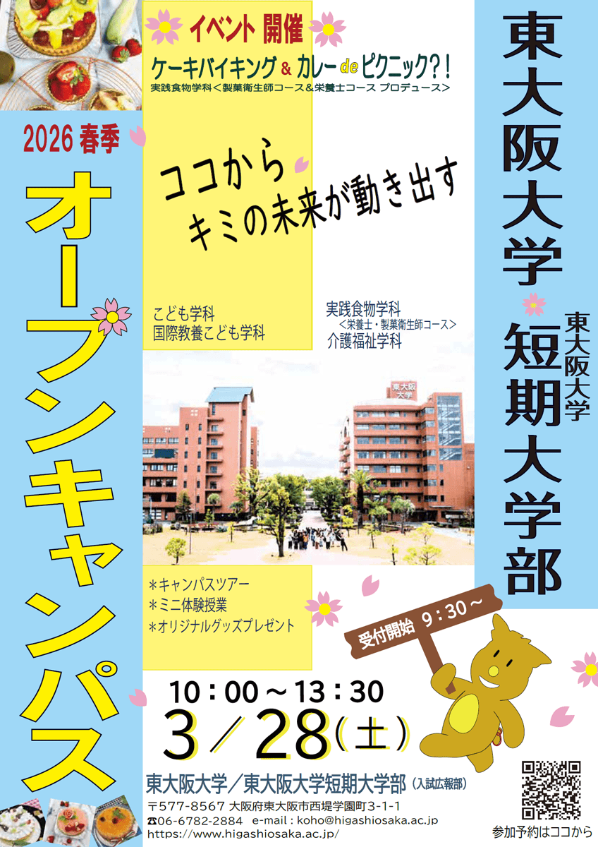 - オープンキャンパスには、予約なしでも参加できますが、ご予約をおすすめします。当日の受付手続きが簡単になる他、在籍高校・学年に応じたご案内をいたします。